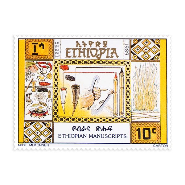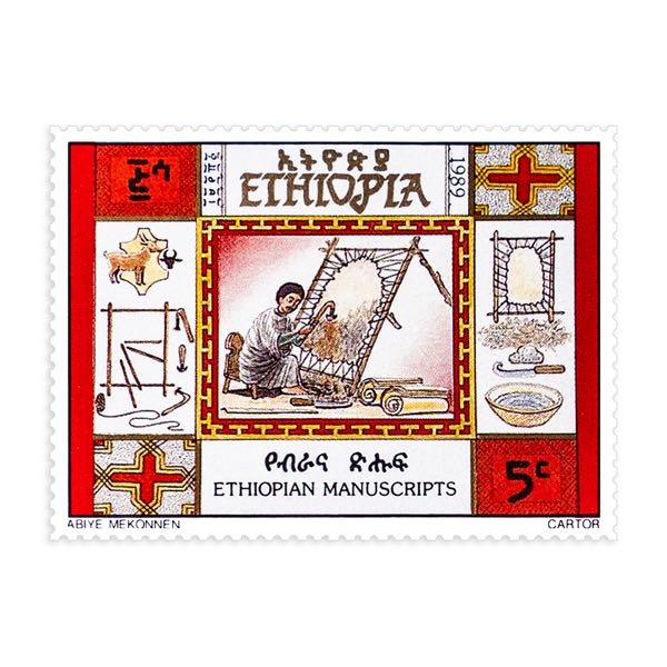In early times, around 1000 B.C. the Sabaeans emigrated to Ethiopia and brought with them a written language whose inscriptions are found engraved on stones. Iron was also used as a writing medium. In the Hellenistic period when Greek culture found its way to AX UM. the common medium was stone. In the 3ra and 4’1′ centuries A.D. a variety of writing materials such as stone, metal clay and probably wood were used. Soft writing materials like, papyrus and skin had been used as writing medium whose introduction to Ethiopia seem to be the work of the Nine Saints in the fifth century. The Nine Saints had the knowhow and the country the material. So the manufacturing of vellum started which became the uncontestable writing medium almost for 1 or 500 years until the nineteenth century when paper began partially to be used.