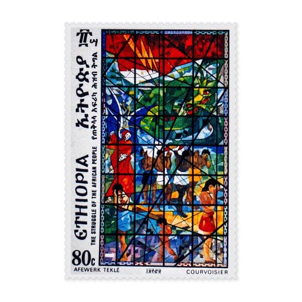On his arrival in Ethiopia, Afewerk opened his studio in the National Library of Ethiopia. Soon afterwards he was given his first challenging commission by the Ethiopian Government: the decoration of St. George’s Cathedral, one of the capital’s two most important religious edifices, where he worked on murals and mosaics for three and a half years.